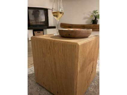Dubová kostka z masivního dřeva – univerzální kus přírody vhodný jako dekorace, stolička, konferenční stolek nebo podstavec. Každý kus je originál s přirozenou kresbou dubu.