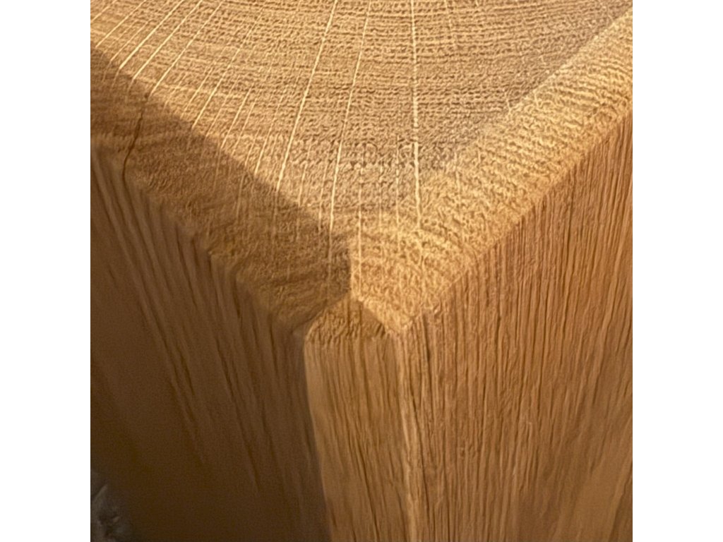 Povrch je pečlivě opracovaný a zachovává přirozenou krásu dubu. Hrany mohou být lehce zaoblené, aby byl výrobek příjemný na dotek a bezpečný pro používání.