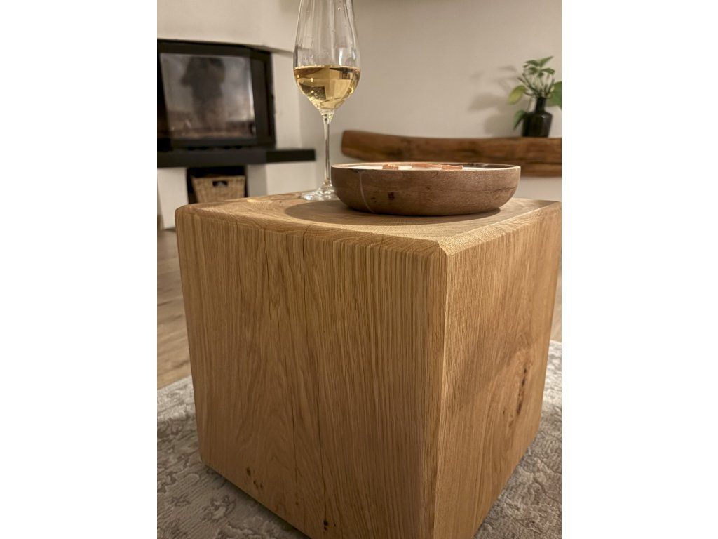 Dubová kostka je vyrobena z masivního dubového dřeva, které se vyznačuje vysokou tvrdostí, odolností a dlouhou životností. Díky přírodní kresbě a rustikálnímu vzhledu je každý kus jedinečný. Kostku lze využít v interiéru i exteriéru – jako stoličku, podnožku, odkládací nebo konferenční stolek, stylový podstavec pod květinu či dekoraci.